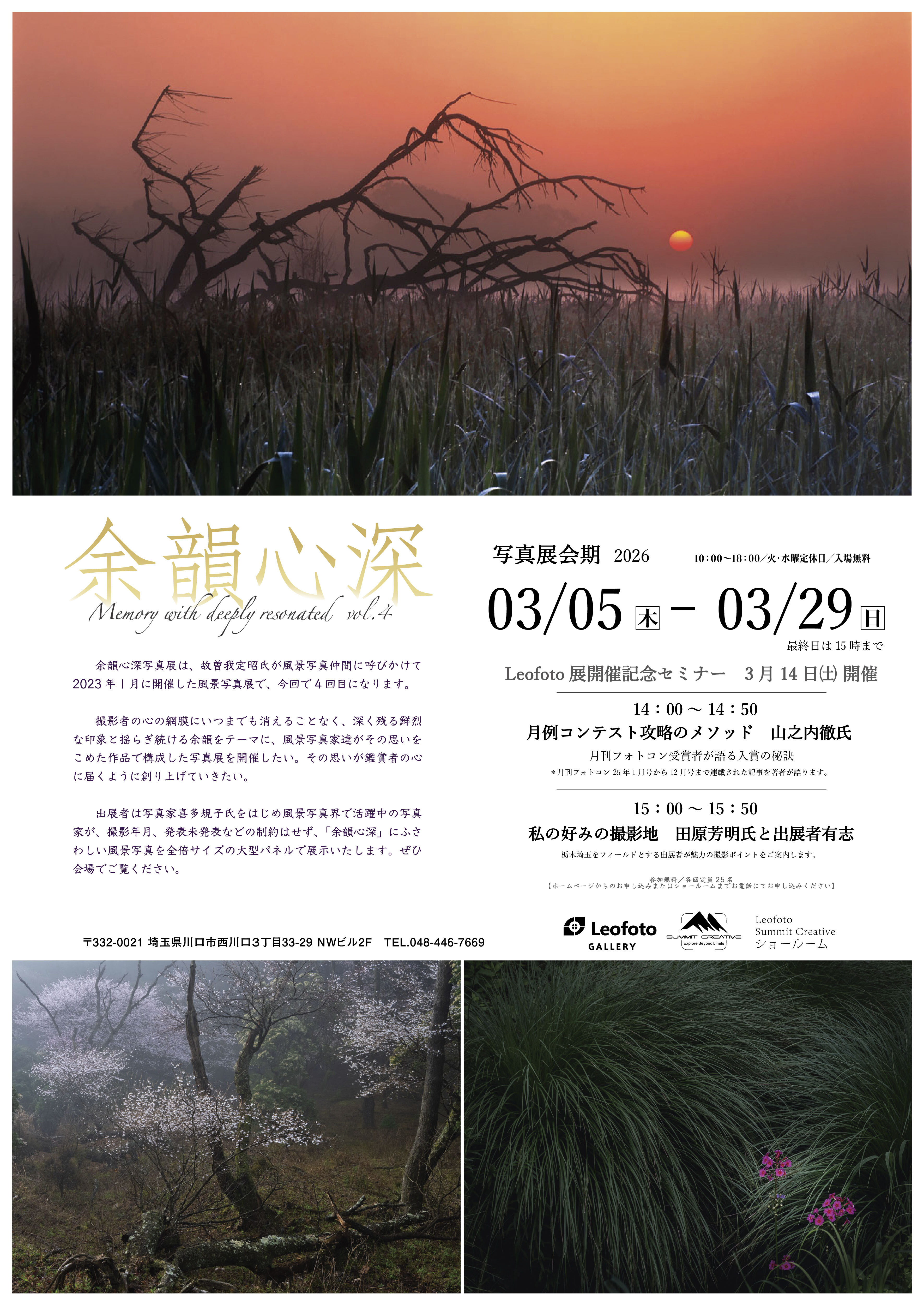3/5(木)~3/29(日)にLeofoto/Summit Creativeショールームにてグループ展「余韻心深」を開催致します。