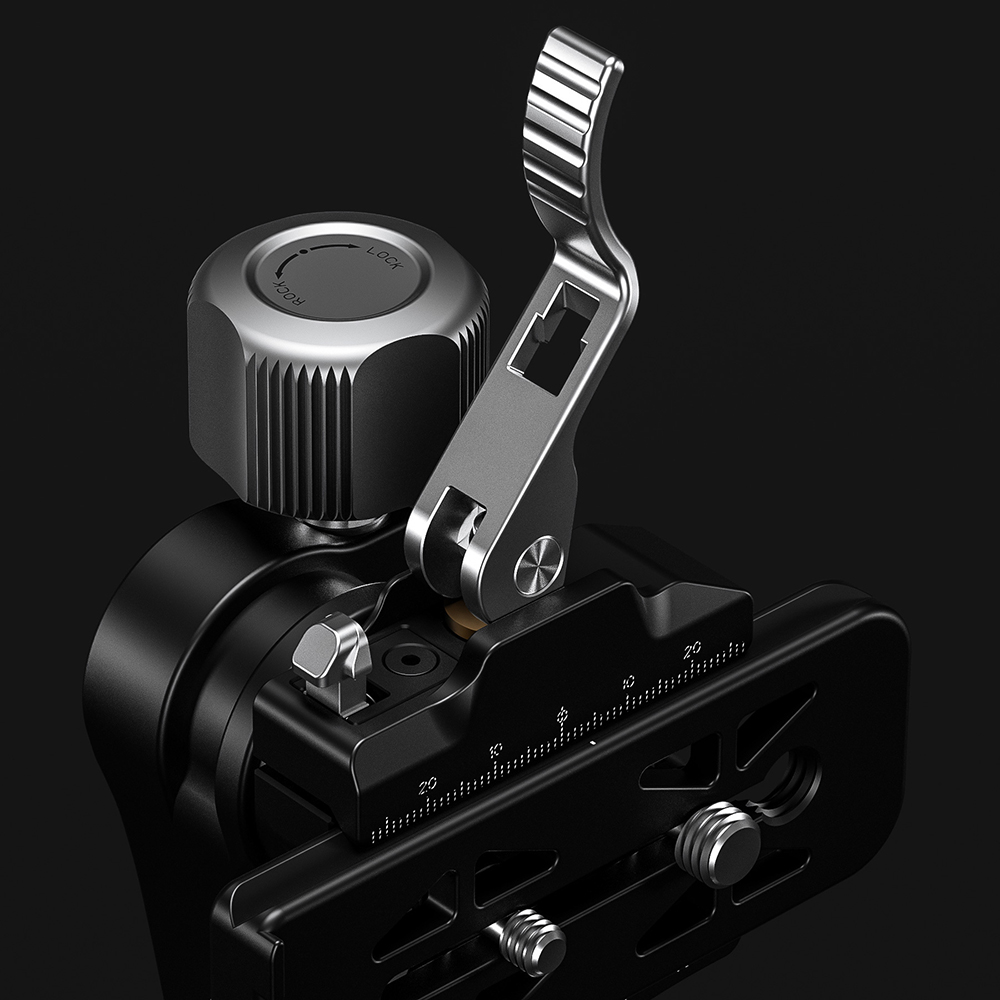 意図しないレバーの解除を防止する為、レバーのデザインを刷新。レバーロックボタンを押しなが らレバーを操作する事で初めて機材の着脱が可能な為、安心して機材を使用する事ができます。